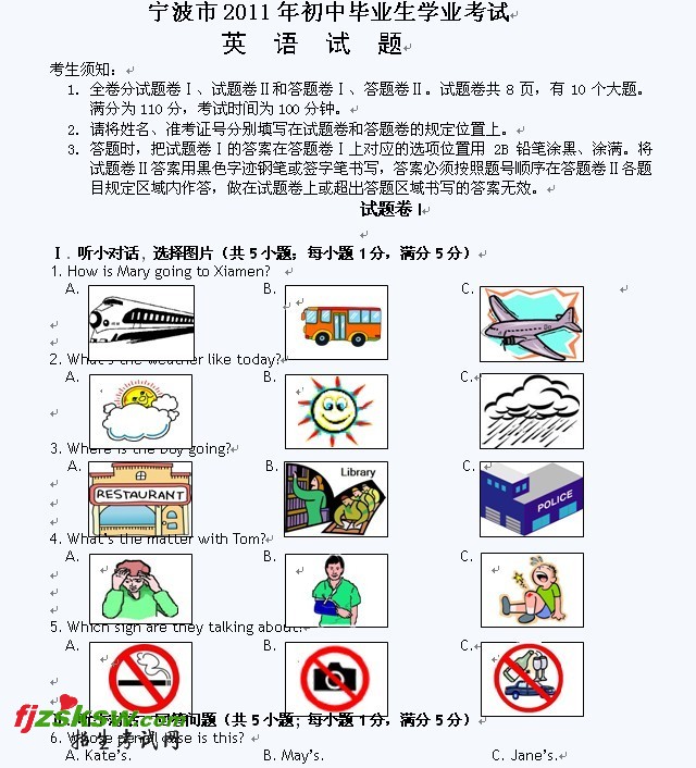 [组图]浙江宁波2011年中考英语试题及答案