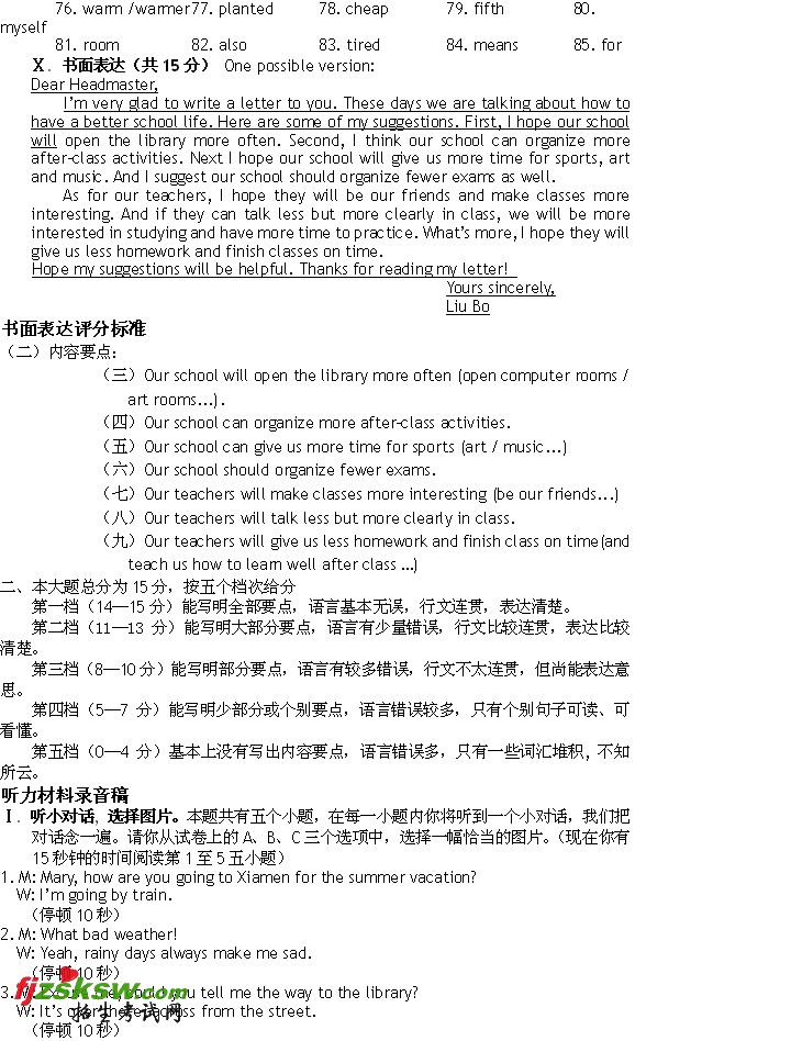 [组图]浙江宁波2011年中考英语试题及答案