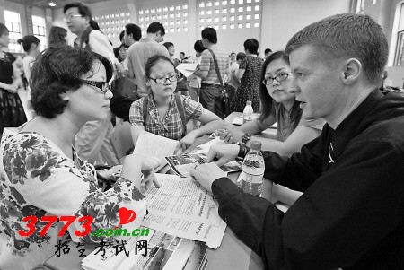 在招生咨询会上,各招生学校展开宣传攻势,为争夺理想的生源而努力着。而对于中考生的家长们来说,这也是他们最纠结、最伤脑筋的时候,因为他们无法确定招生学校的估分是否准确。