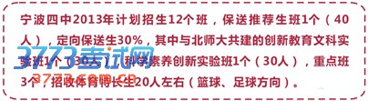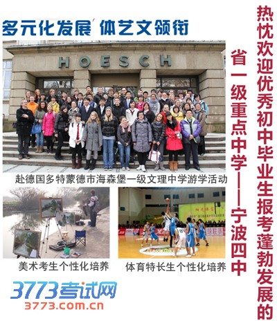 宁波第四中学2013年招生简章 地 址:宁波市文教路 125 号(公交 510 路、 908 路、 3 路、 345 路、 26 路、 523 路、 516 路、 517 路、 26 路、 159 路、 337 路、 339 路等可到,交通便利。)