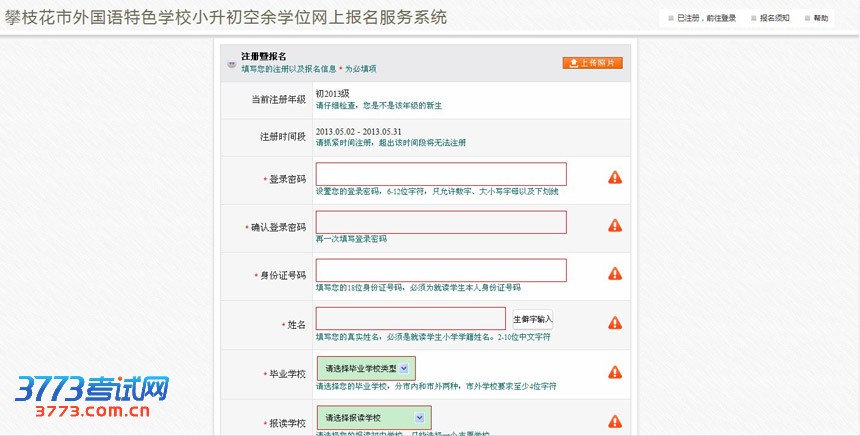 注册页面如下(在注册时请注意各信息项后面的填写要求):