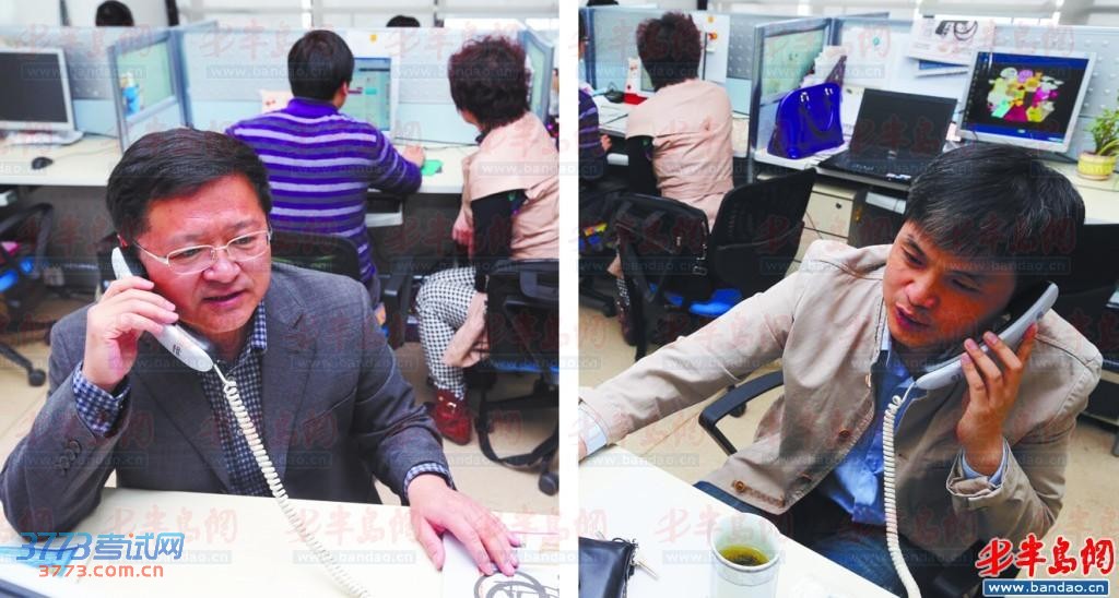 安伯贞(左)和张涛(右)分别在接听咨询电话。