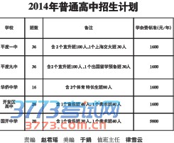 记者了解到,2014年平度市初中毕业生14407人,高中段学校计划招生13831人,其中普通高中计划招生7012人,职业学校计划招生6819人。与以往不同的是,从2014年开始,平度市普通高中不再招收择校生,普通高中招收平度市应届初中毕业生,其综合素质评价五项基础性发展目标必须均达到C级(含C级)以上。2014年平度市普通高中计划招收128个班,依据招生计划,严格按考生志愿顺序、成绩,分批次从高分到低分择优录取,录取顺序为:“3+4”中等职业学校与普通本科院校分段培养批(简称“3+4”本科)、普通高中批、中职批。其中报考“3+4”本科作为提前批志愿,被录取的学生不再报考其他学校,未被录取的学生不影响其他志愿学校录取;报考普通班的考生,可填报三个志愿。第一志愿可从一中、九中两所学校中选报一处,不得兼报,第二、三志愿可分别从华侨中学、开发区高中、国开中学三所学校中选报;报考普通高中音乐、美术、体育专业的考生,必须是专业测试合格的考生。报考音乐、美术专业的考生,第一、二志愿从开发区高中和国开中学两所学校中选报。报考体育专业的考生,第一志愿直接填报侨中体育即可;以上各类考生,在填写普高志愿结束后,都要在最后一个志愿中填报一处职业学校的一个专业,未被普通高中录取的考生,按报考职业学校志愿专业参加职业学校的第二次招生录取。