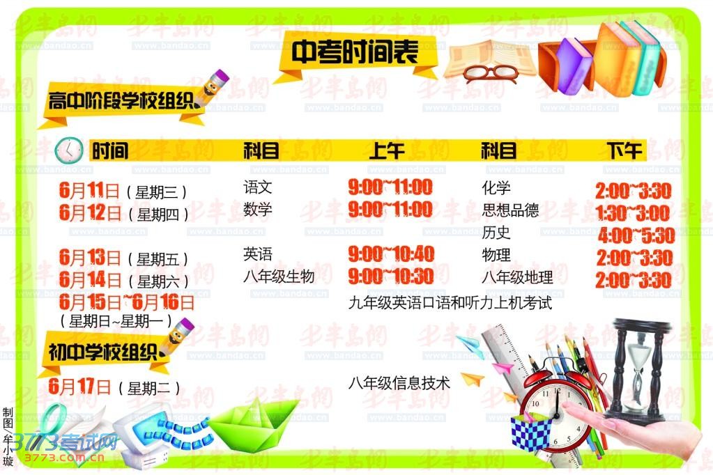 记者从考试时间表上看到,6月11日至6月13日将进行九年级学业考试,6月14日将进行八年级地理、生物八年级学业考试,6月15日至16日将进行九年级英语口语和听力上机考试,6月17日将进行八年级信息技术考试。