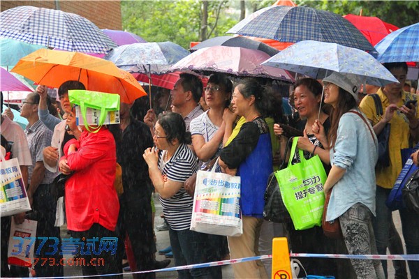 下午3点半,首日第二场化学考试结束。在二中分校门口,突如其来的一场大雨,虽然让许多等候在考场外的家长和刚刚步出考场的考生有些措手不及,但是在交警的指挥下,现场秩序井然。