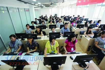市招办副主任梁军介绍,今年是我市初中学生学业考试第一次实行了题卡分离考试模式、第一次实行了网上评阅试卷、第一次实行集中全市考生试卷统一批卷。全市预计需要参阅65万份试卷。阅卷前,市普教教研室组织各学科专家制订了详细的评分细则和阅卷标准,阅卷中严格执行标准,坚持“给一分有理、扣一分有据”。考生试卷经过电子扫描,生成电子图像,然后根据试卷类型进行不同切块,分配到全市5个阅卷点,进行网上评阅。