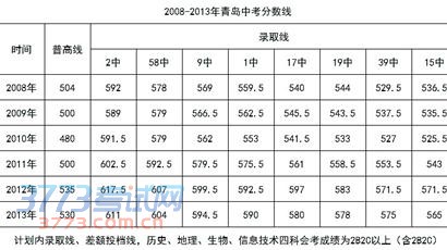 今天上午9时,全市中考考生就能查询成绩了。今年,青岛市九年级考生数量比去年少了1万多人,市内三区过半考生都能上普高。记者从市招办获悉,虽然今年3+4本科将提前录取,但和中考成绩同步,市教育局还是会公布今年的普高线。记者整理出2008年至2013年的普高线和部分高中的录取线供家长和考生参考。