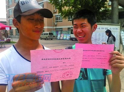 从青岛第二实验中学考入青岛一中的能纪元和23中学毕业生张积存一起领取了通知书,能纪元说,两人虽然不在同一所初中,但有着共同的爱好——打篮球,也是在打篮球时相识。“我们住在错埠岭附近,今天拿通知书约好一块过来,不用父母陪。”能纪元说。