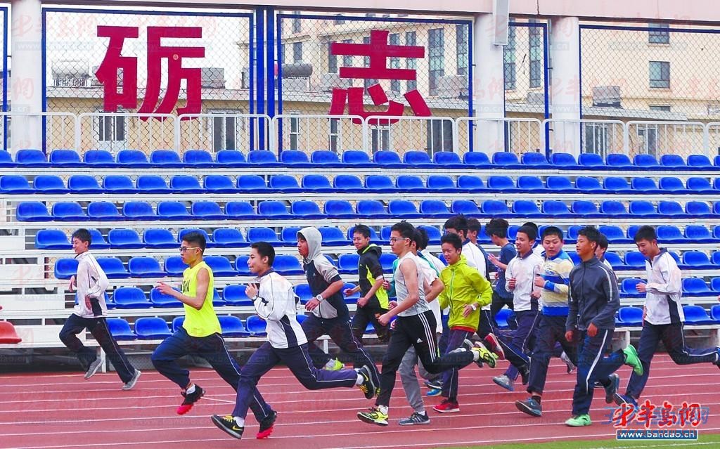 体育中考首日,在青岛一中考场,男生测试1000米跑
