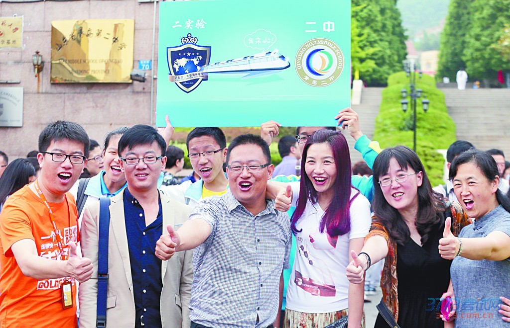 2中考点,第二实验初中的师生们前来为自己学校的考生加油鼓劲。