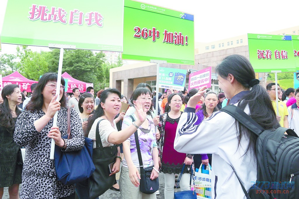 2中考点,26中老师举牌给自己的学生们加油。本组图/本报记者 孟达 摄
