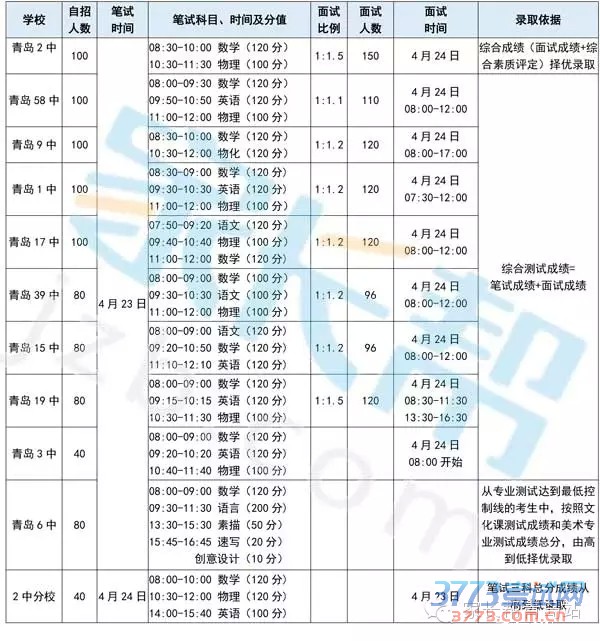[图文]2016青岛高中自主招生笔试面试录取时间信息