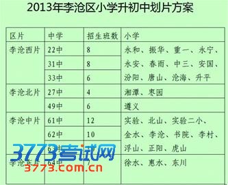 2013年李沧区小学毕业生继续实行相对就近升入初中的办法,继续采用以小学为单位整体划拨或电脑派位两种办法,分为4个学区片。实行电脑派位区片的小学毕业生在毕业学校填写《初中入学报名单》,小学毕业生需按自己意愿的先后顺序,将本片所有中学依次填报为初中入学志愿,不得跨报两片或两片以上的中学,报名单由家长签字生效。