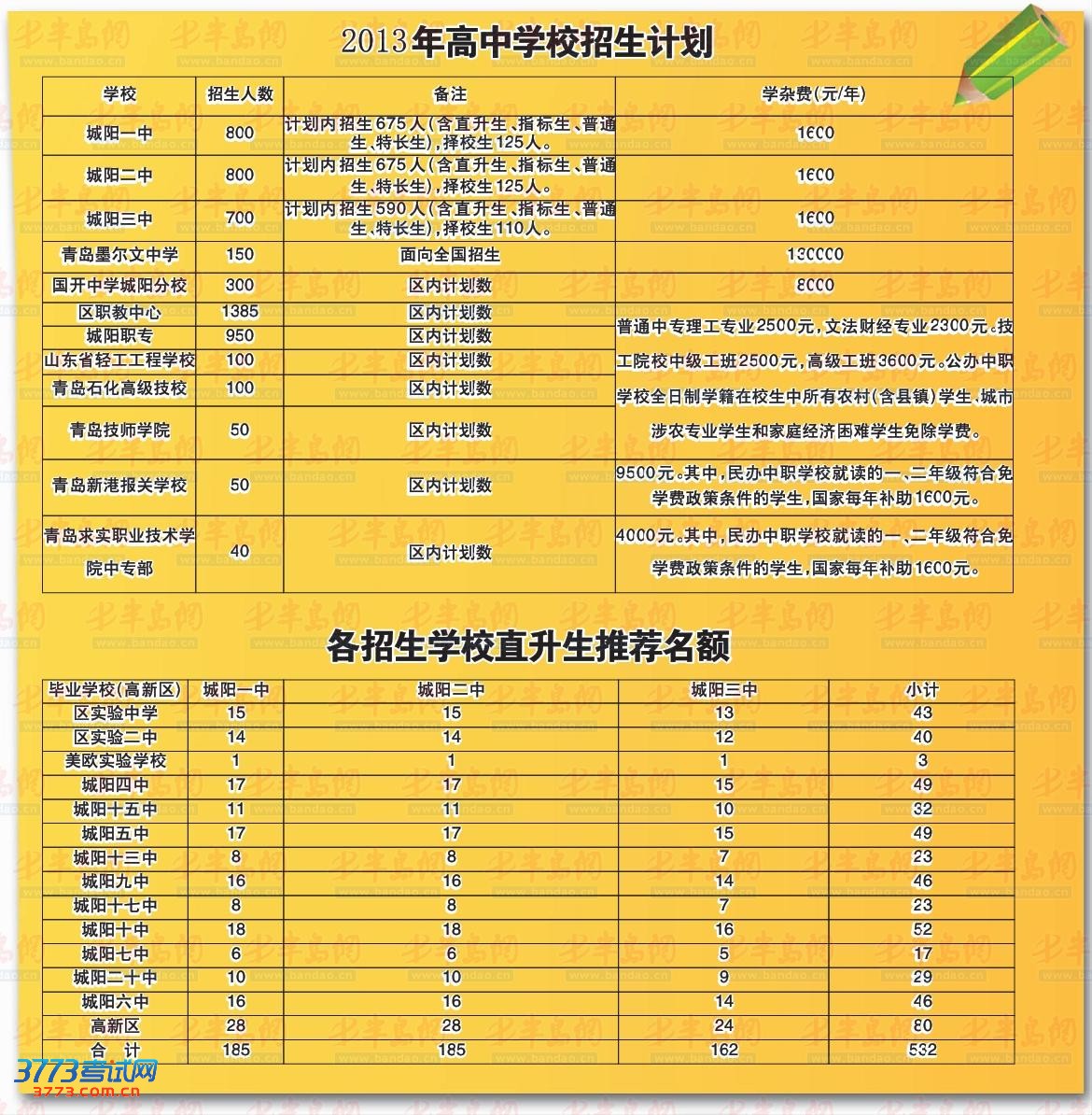 记者近日从城阳区教体局获悉,2013年城阳高中招生方案已经出炉,高中学校将于5月23日~24日审核报名材料并接受现场报名。据了解,今年城阳区普通高中计划招生2750人,各类职业学校计划招生3075人。