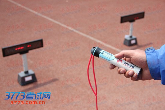 记者看到所谓的ID标签卡就是一个感应器,主要由松紧带和芯片两部分组成。开跑前考生需要将芯片朝上,把松紧带套在右侧运动鞋正上方。而开跑后,每圈经过终点和完成规定测试距离冲过终点时考生需要踏过设置在终点的感应垫子,通过脚上的ID标签卡将成绩自动录入测试仪器。