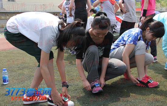 考生在右脚套上“感应器”
