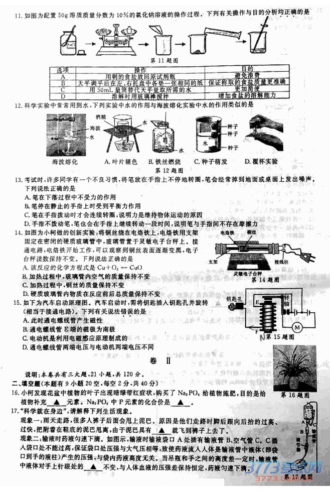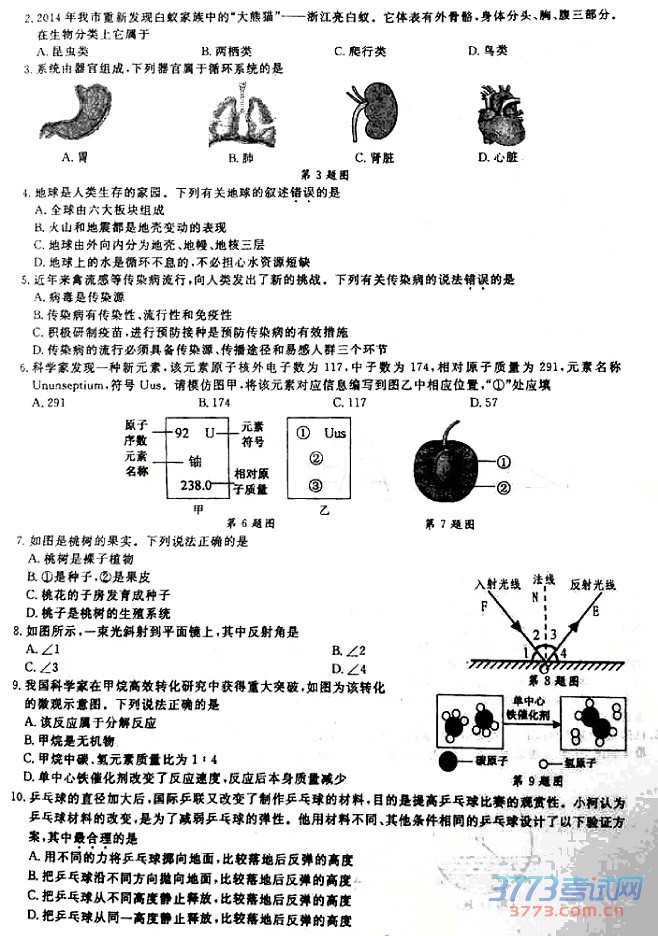 公布衢州中考试题、答案和中考作文。祝各位考生都能取得好的成绩。2015年浙江衢州市中考科学试题及答案: