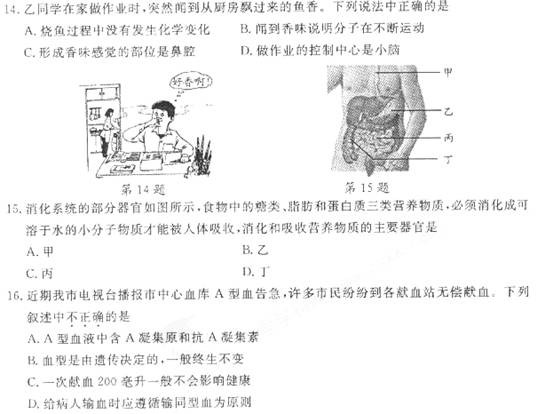 [组图]2012年衢州中考科学试卷答案及评分标准