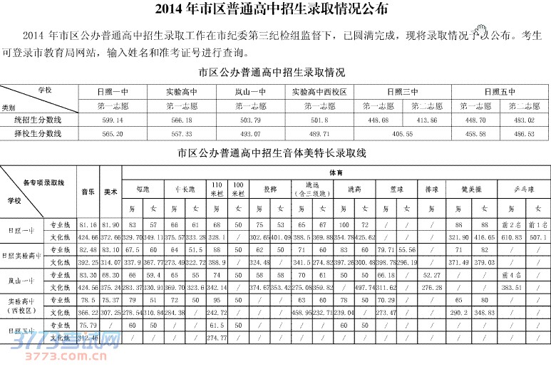 [图文]2014日照市区普通高中录取分数线(含艺术特长生)
