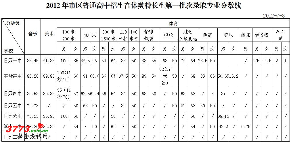 2012年日照市区普通高中第一批次录取成绩公布