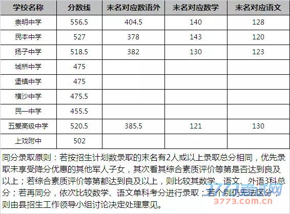 [图文]2015上海崇明县中考高中录取分数线公布
