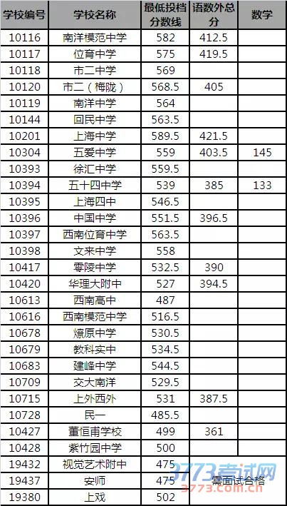[图文]2015上海徐汇区中考高中录取分数线公布