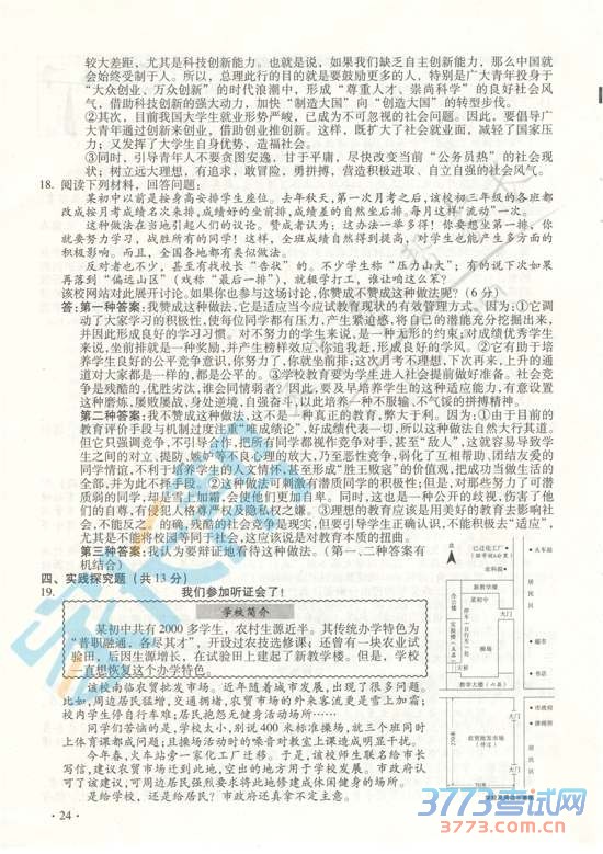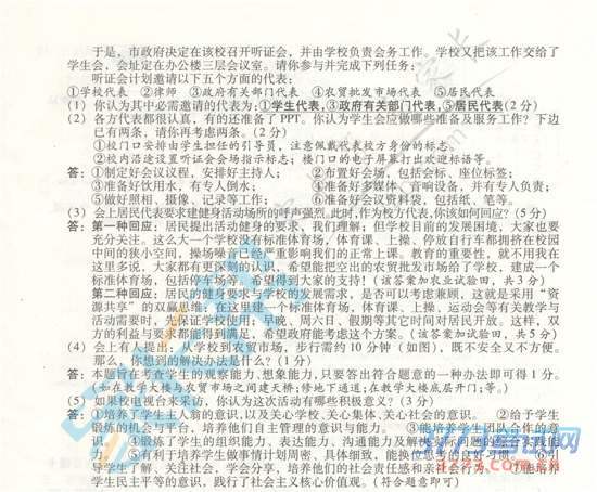 [组图]2015山西中考文综试题及答案评分标准发布