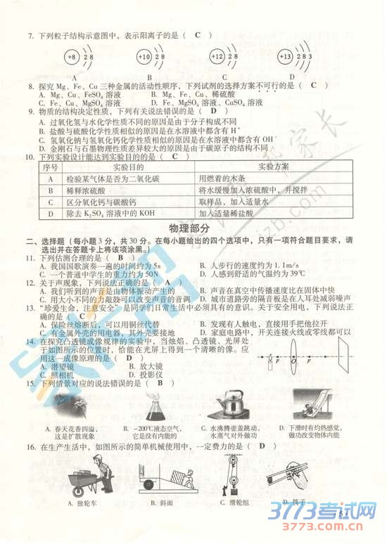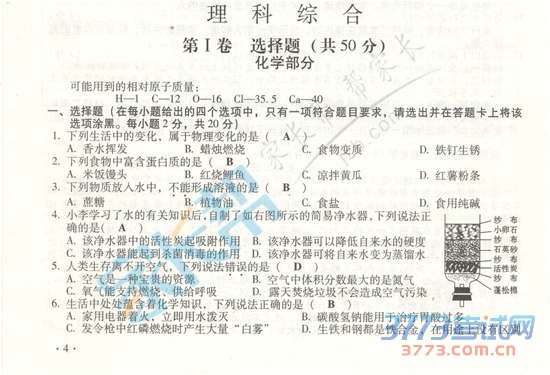 [组图]2015山西中考理综试题及答案发布