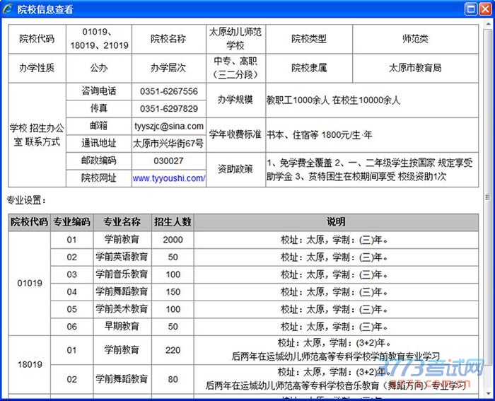 如果要了解某学校的详细信息,单击页面中该学校所在行,调出如下界面查看: