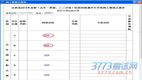 在全部准备工作结束后,单击“开始填报志愿”按钮,进入如下界面: