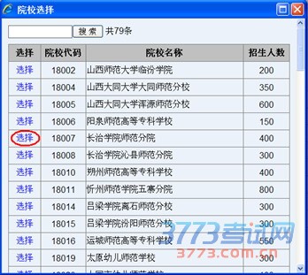 单击您所选院校前面的“选择”按钮,显示如下: