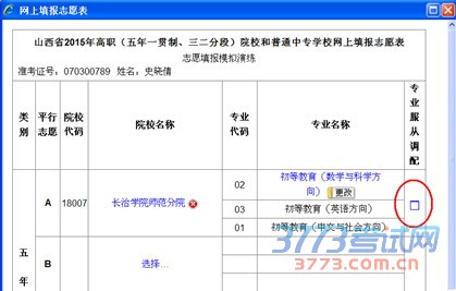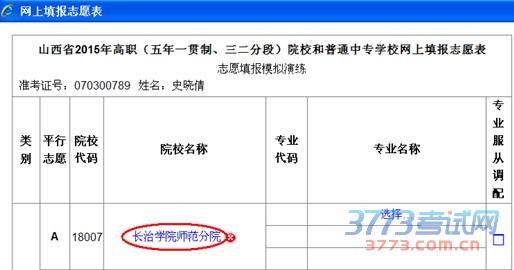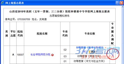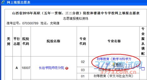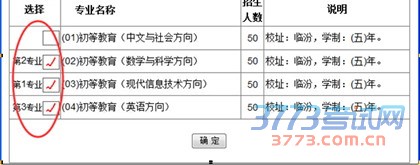 每所高职院校您最多可能选报三个专业。中专学校不填专业。专业选报结束后,单击确定按钮,返回如下页面: