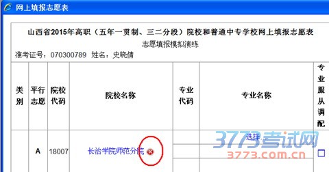 考生如删除已填报的院校志愿,可直接单击要删除的院校后面的红色“×”(如下图):