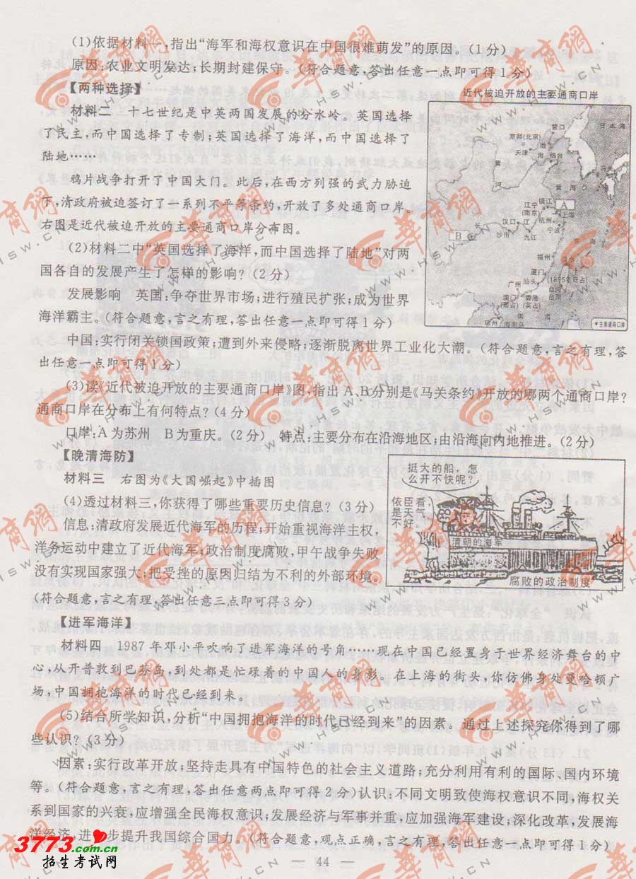 [组图]2012年陕西中考思想品德与历史试题及答案