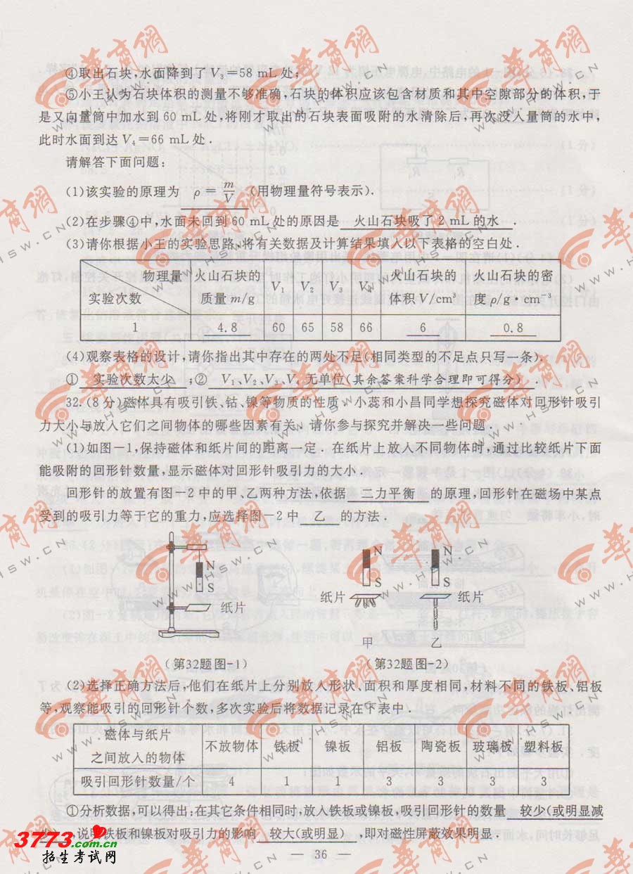 [组图]2012年陕西省中考物理化学试题及答案