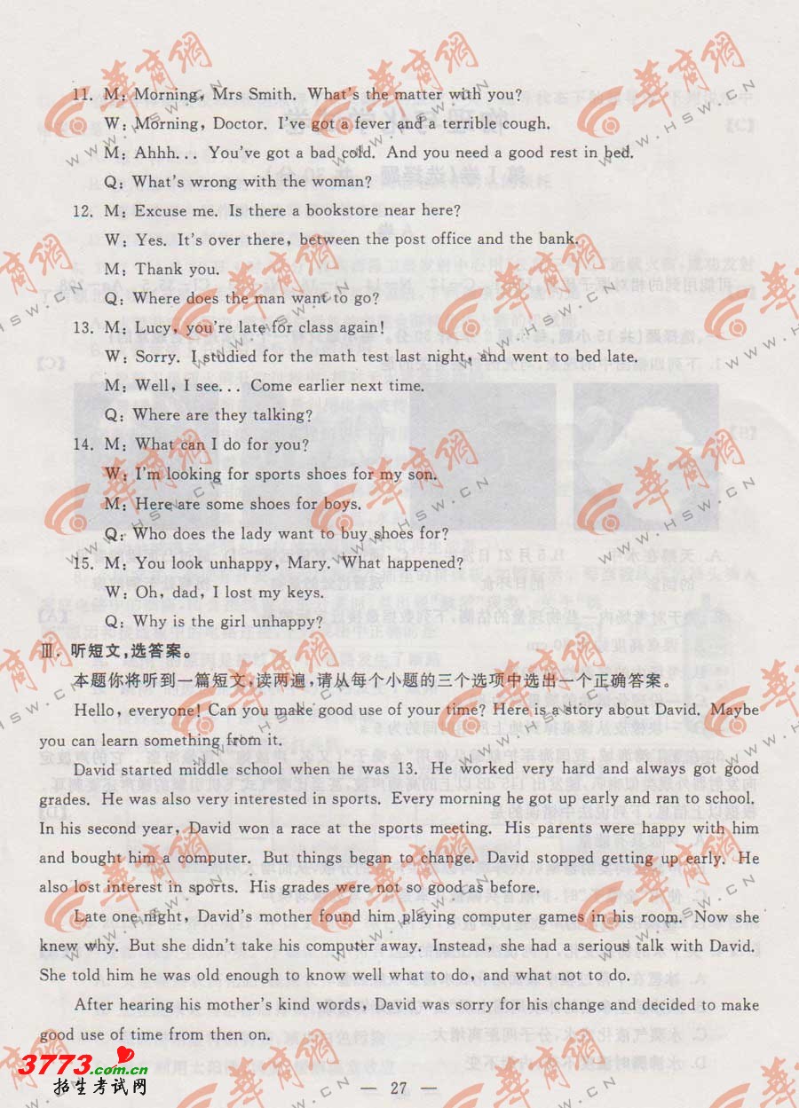 [组图]2012年陕西省中考英语试题及答案