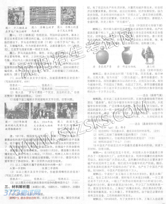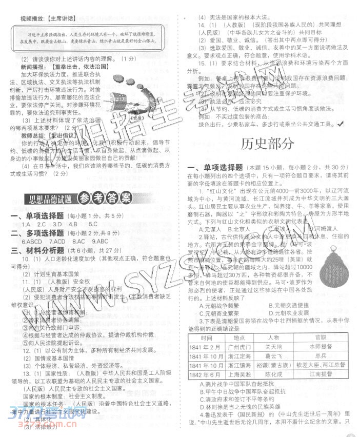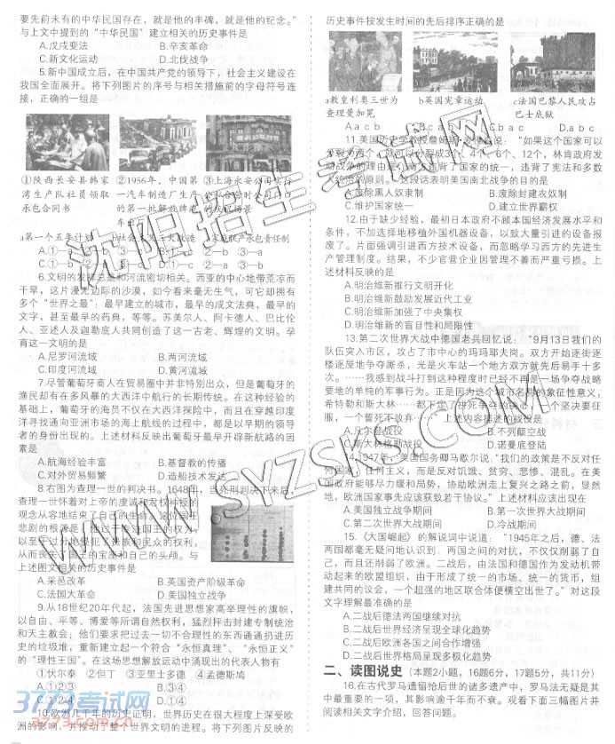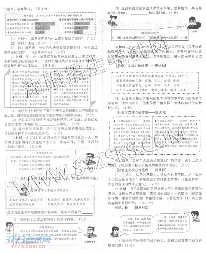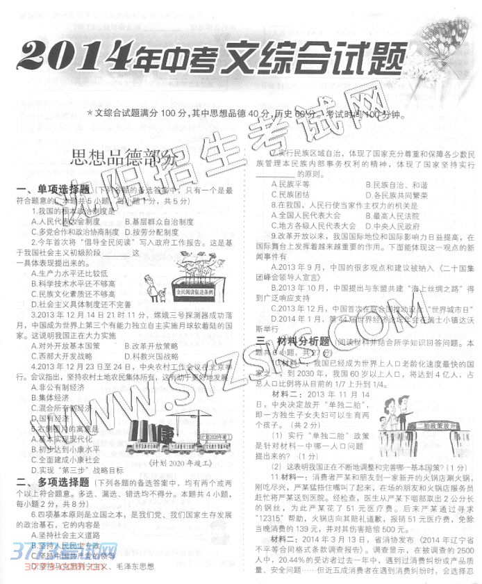 2014年沈阳市中等学校招生统一考试文综合试题与参考答案