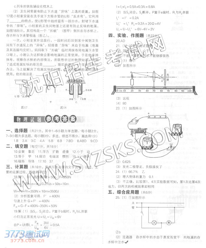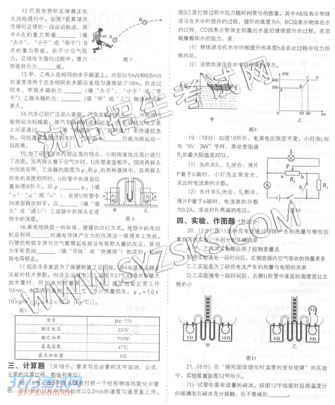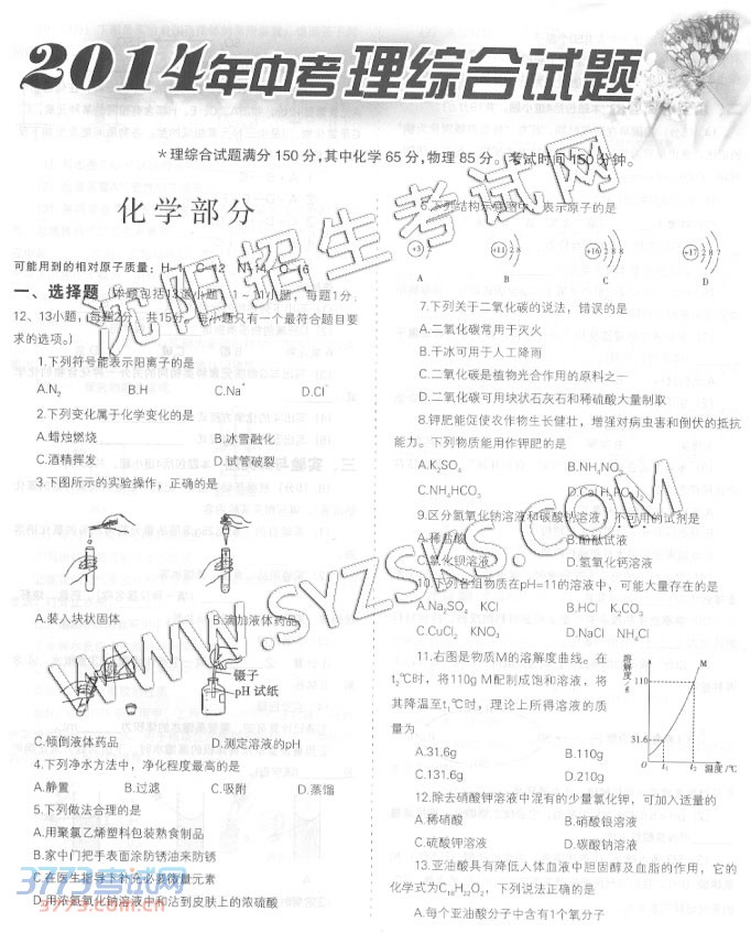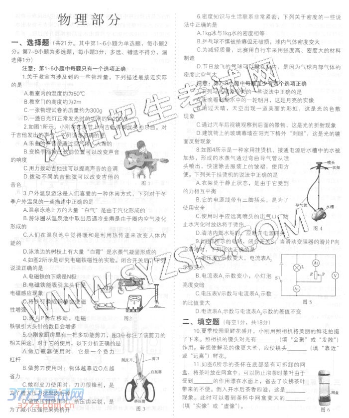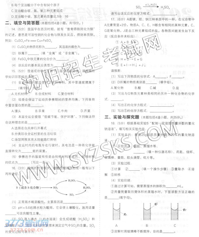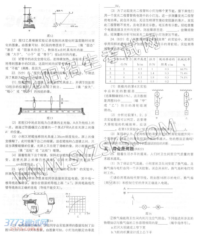 [组图]2014沈阳中考理综合试题与答案发布
