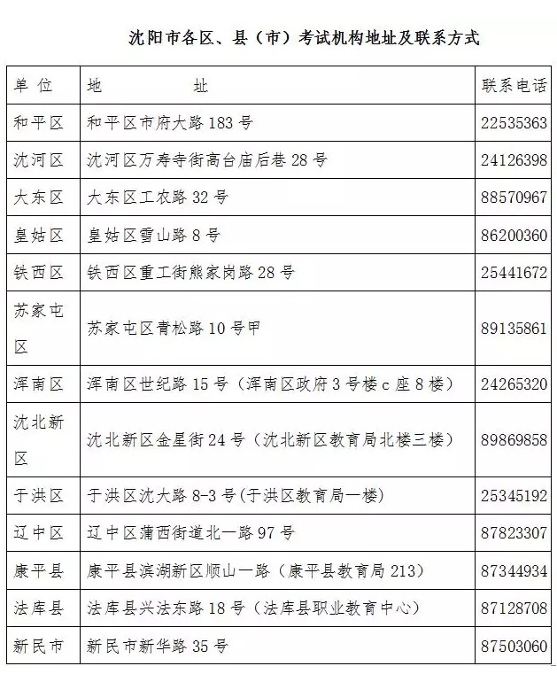 属《关于贯彻市政府〈关于解决我市中心城区居民人与户口分离问题的通知〉的通知》(沈教委函字〔1990〕64号)规定的杨士、于洪、北陵等3个街道办事处城市户口毕业生,可在所在区考试机构报名,也可在挂靠区考试机构报名;铁西区大青乡、翟家镇、大潘镇、彰驿镇、高花镇户口毕业生可在铁西区考试机构报名,也可在于洪区考试机构报名;铁西区新民屯镇、长滩镇、四方台镇户口毕业生可在铁西区考试机构报名,也可在辽中区考试机构报名;用本民族语言答卷的朝鲜族毕业生在皇姑区考试机构报名。