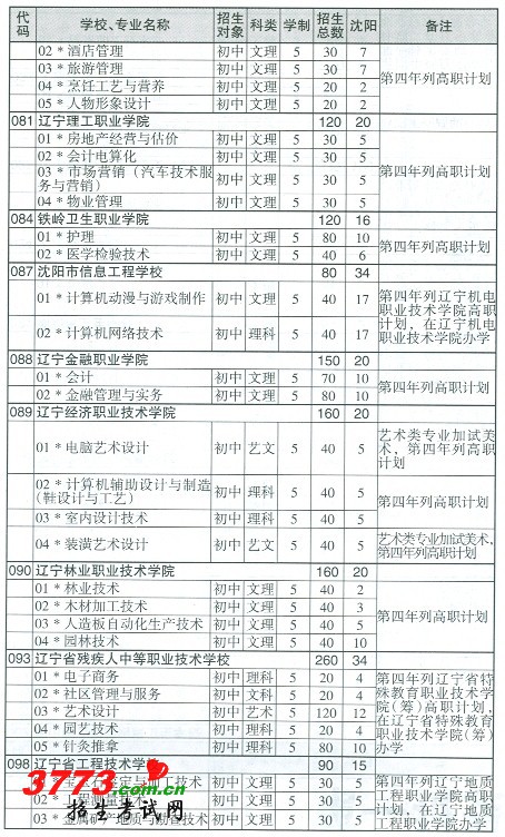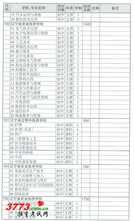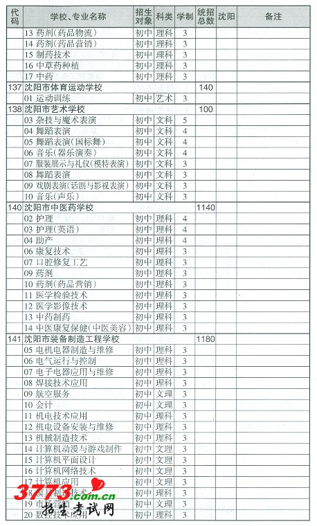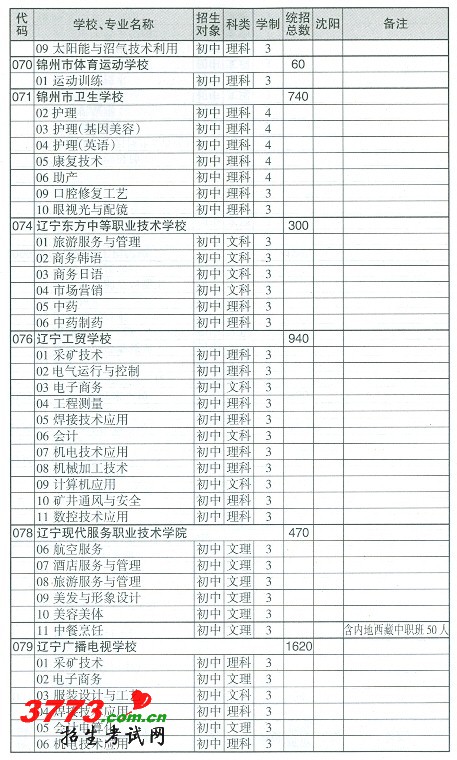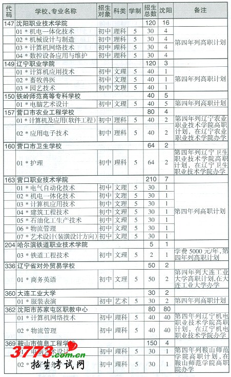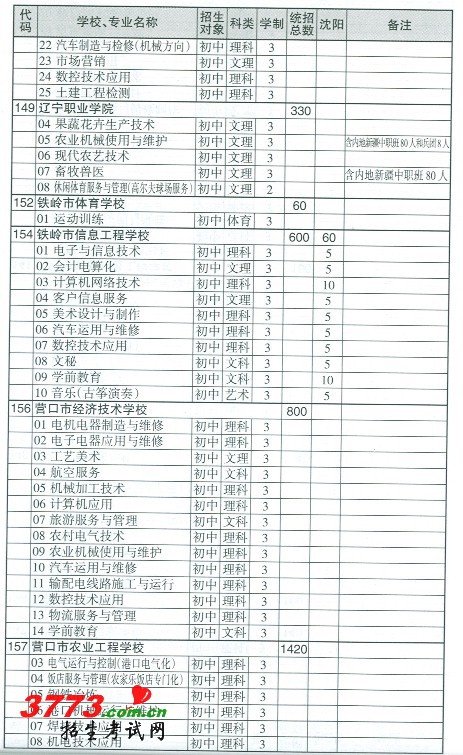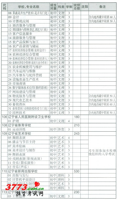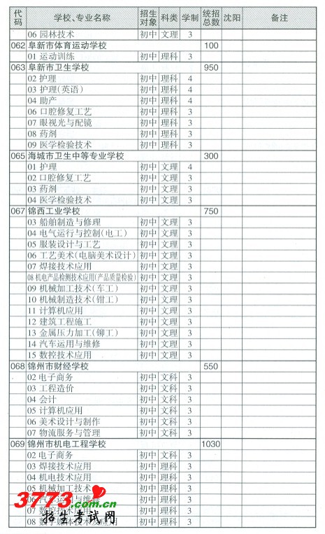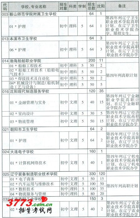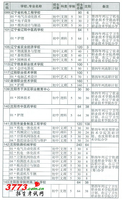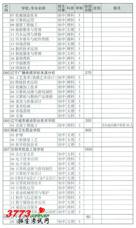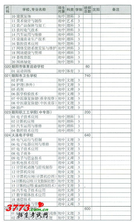[组图]2012年辽宁省沈阳市3+2模式及普通中专学校招生计划
