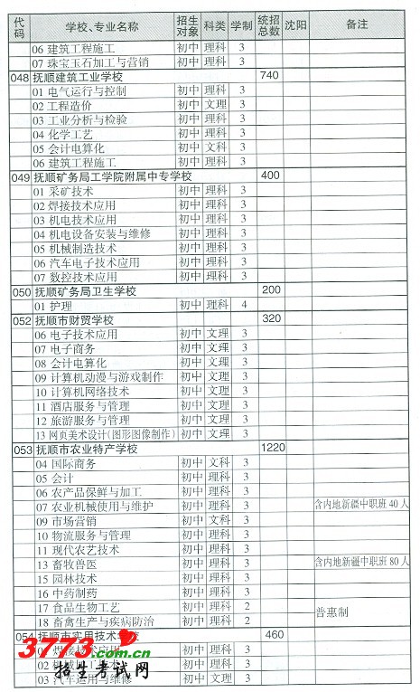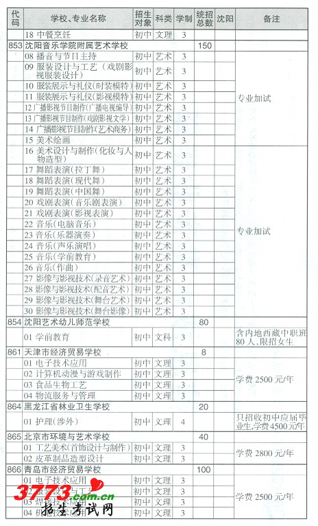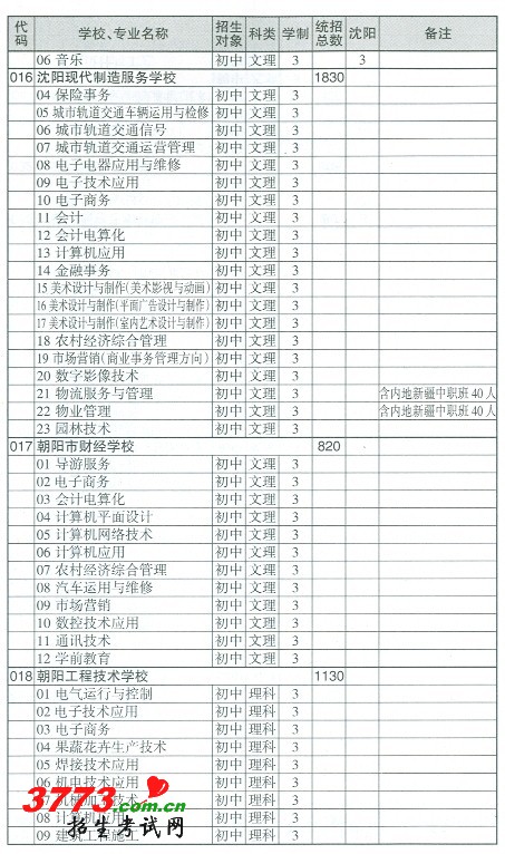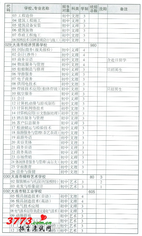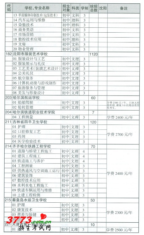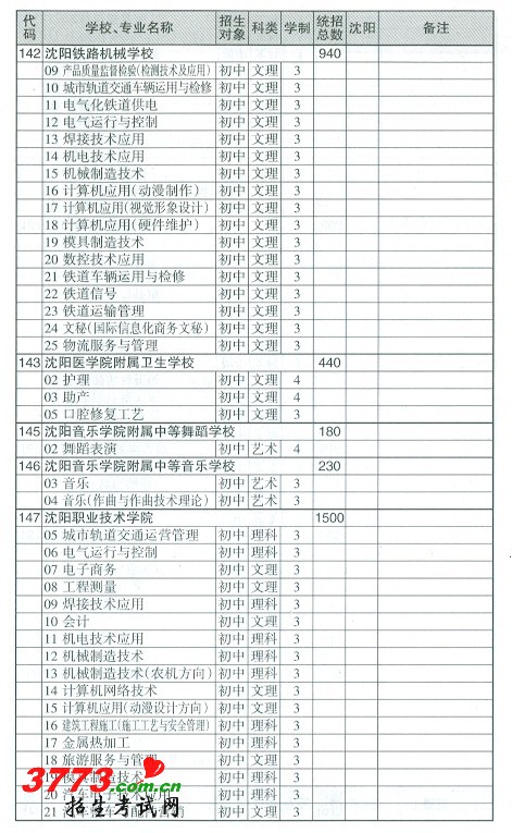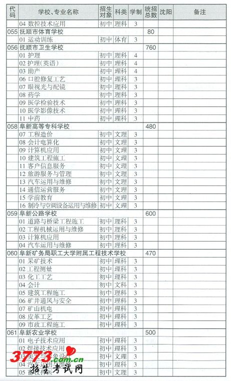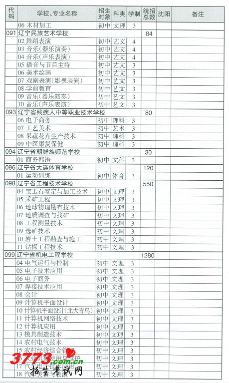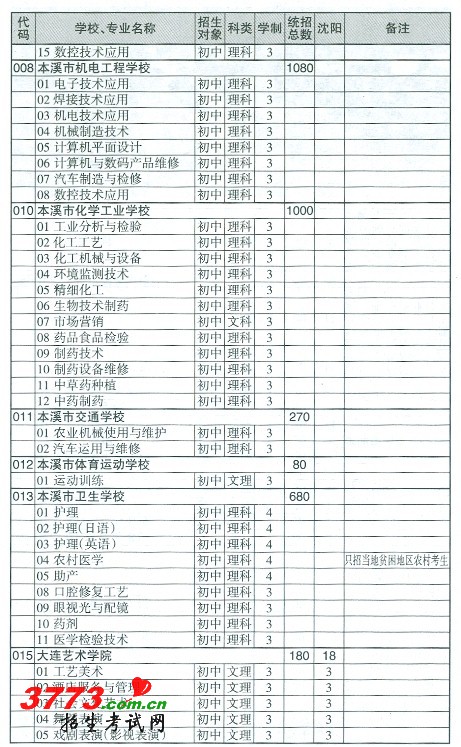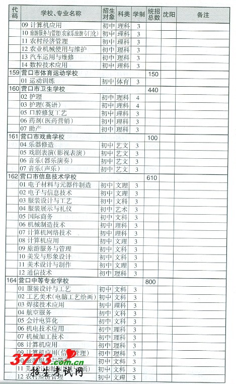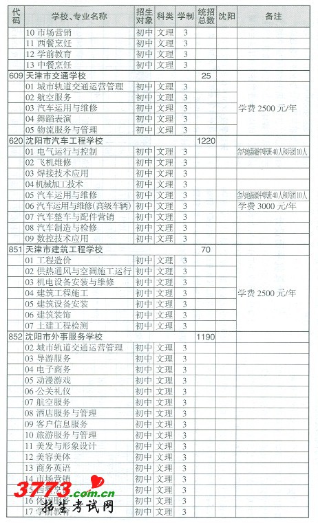 [组图]2012年辽宁省沈阳市3+2模式及普通中专学校招生计划