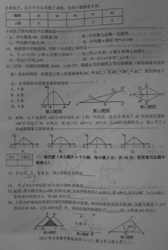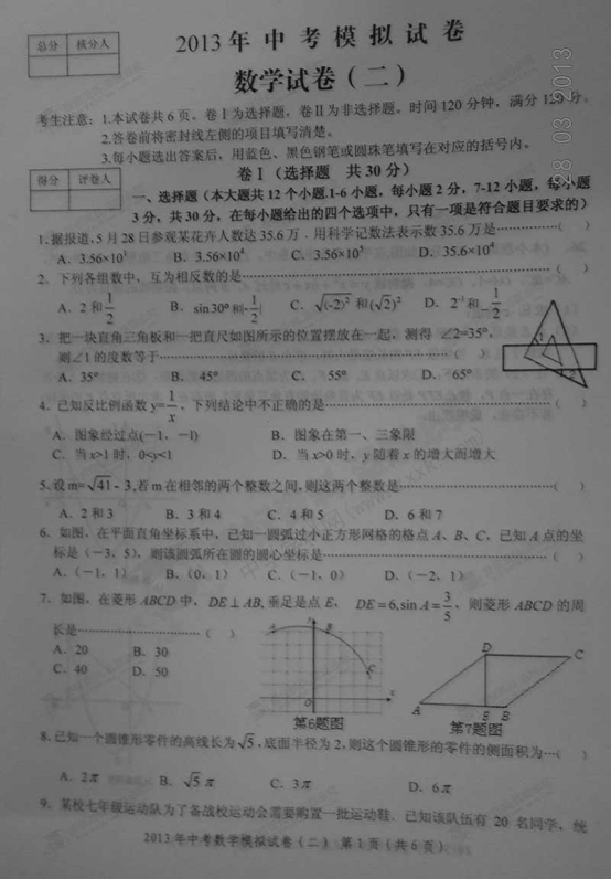 沧州市四校2013届九年级第一次模拟考试数学试题