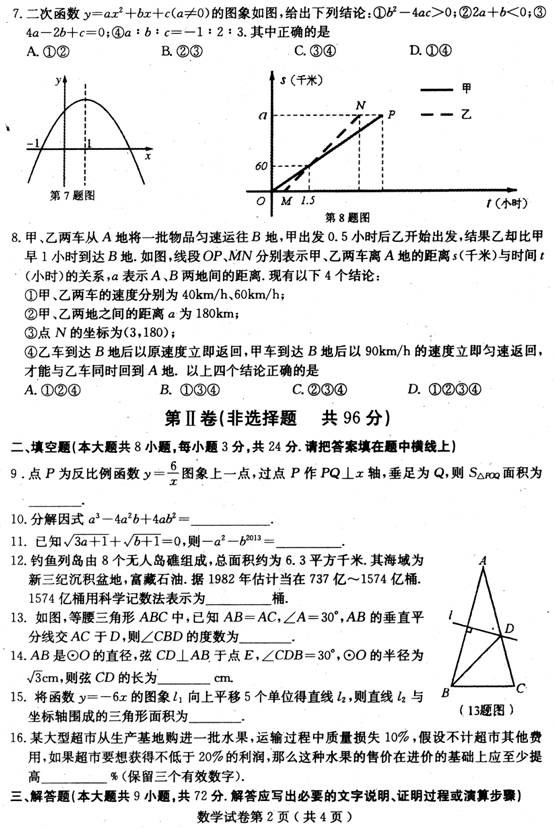 3773考试网2016中考数学正文