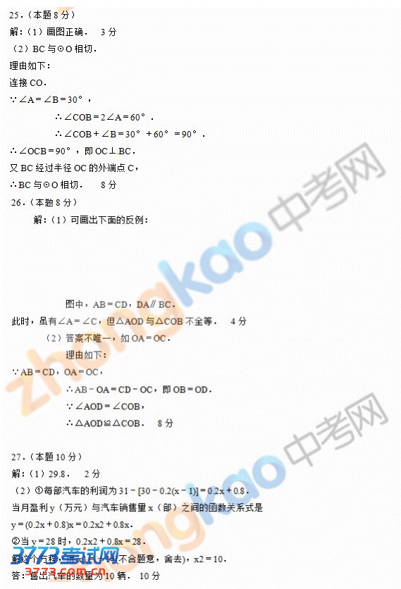 3773考试网2016中考数学正文