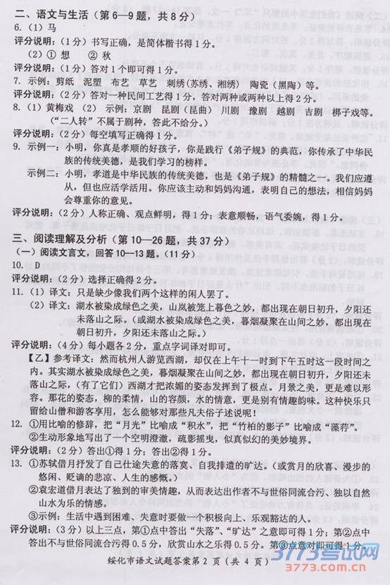 (2) ,良多趣味。 (《三峡》郦道元) (1分)