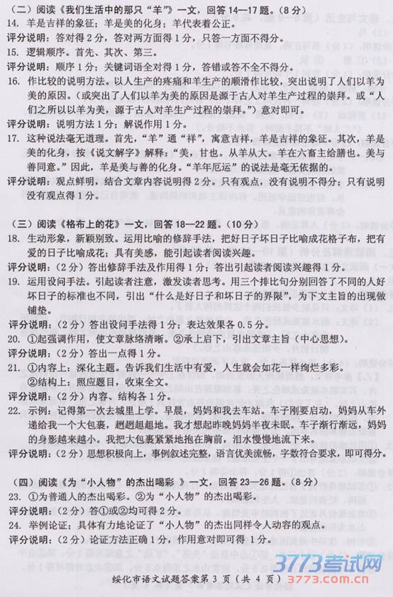 17.2015年又值羊年,一些“十羊九不全”的“羊年厄运”说法也悄悄在民间流传开来。请结合文章相关内容,谈谈你的看法。 (2分)