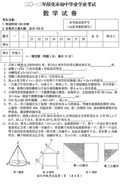 [组图]2012年黑龙江绥化中考数学试卷及答案