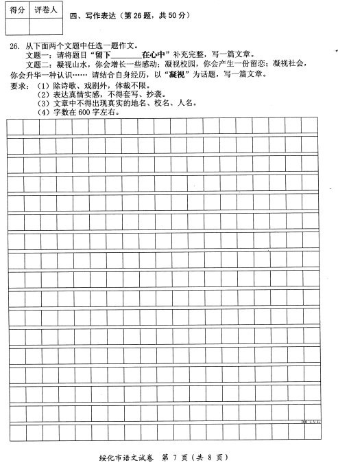 [组图]2012年绥化中考语文试题答案及评分标准