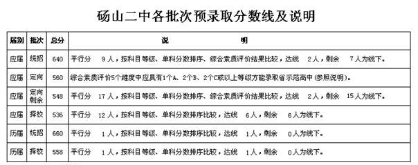 二、在省示范高中录取中,根据省示范高中每一批次(统招、定向、定向剩余、择校)的计划数1:1的比例按总分二从高分到低分进行投档,平行分投档顺序按以下规则进行:对中考总分二相同的考生,以中考科目分数等级作为区分录取先后依据,等级标准高的考生优先录取;考生的中考总分二、中考科目分数等级都相同时,按语文、数学、英语、物理和化学、思想品德和历史科目顺序,分数高的优先录取。考生的中考总分二、科目分数等级相同,且按科目顺序的分数仍不能确定录取的先后时,综合素质评价结果作为录取依据(不含择校生),等级高的优先录取,额满为止。