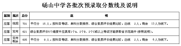 二、在省示范高中录取中,根据省示范高中每一批次(统招、定向、定向剩余)的计划数1:1的比例按总分二从高分到低分进行投档,平行分投档顺序按以下规则进行:对中考总分二相同的考生,以中考科目分数等级作为区分录取先后依据,等级标准高的考生优先录取;考生的中考总分二、中考科目分数等级都相同时,按语文、数学、英语、物理和化学、思想品德和历史科目顺序,分数高的优先录取。考生的中考总分二、科目分数等级相同,且按科目顺序的分数仍不能确定录取的先后时,综合素质评价结果作为录取依据,等级高的优先录取,额满为止。